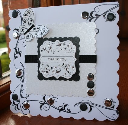 Oooh must also mention that my cousin phoned me on Monday to say that he and Claire thought that my wedding card was lovely and that they could see that I had followed the colours and style of their wedding invite (which I had) and that it stood out from all the other cards that they were given and that they love it!! How nice was that to call and thank me - and thats what making cards is all about - that compliment in itself made my day! (The wedding card in question is on a post below - its got crystals and swirls on it).